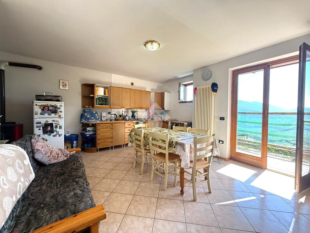 La zona giorno è composta da un ampio e luminoso soggiorno, ideale per godere della luce naturale per gran parte della giornata. Adiacente al soggiorno si trova un pratico cucinotto, con accesso ad un giardino/terrazzo con vista panoramica.