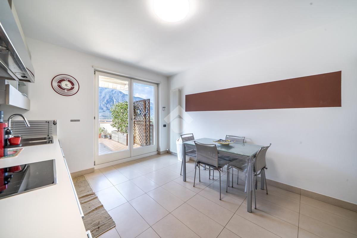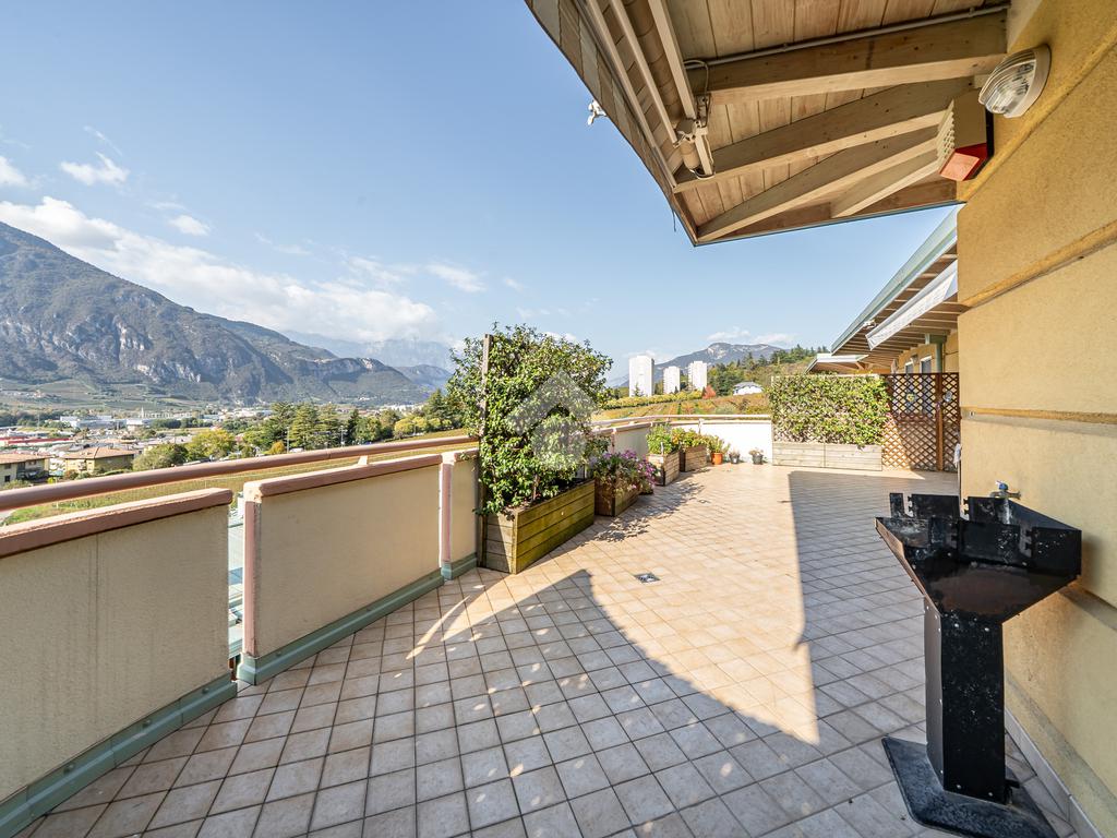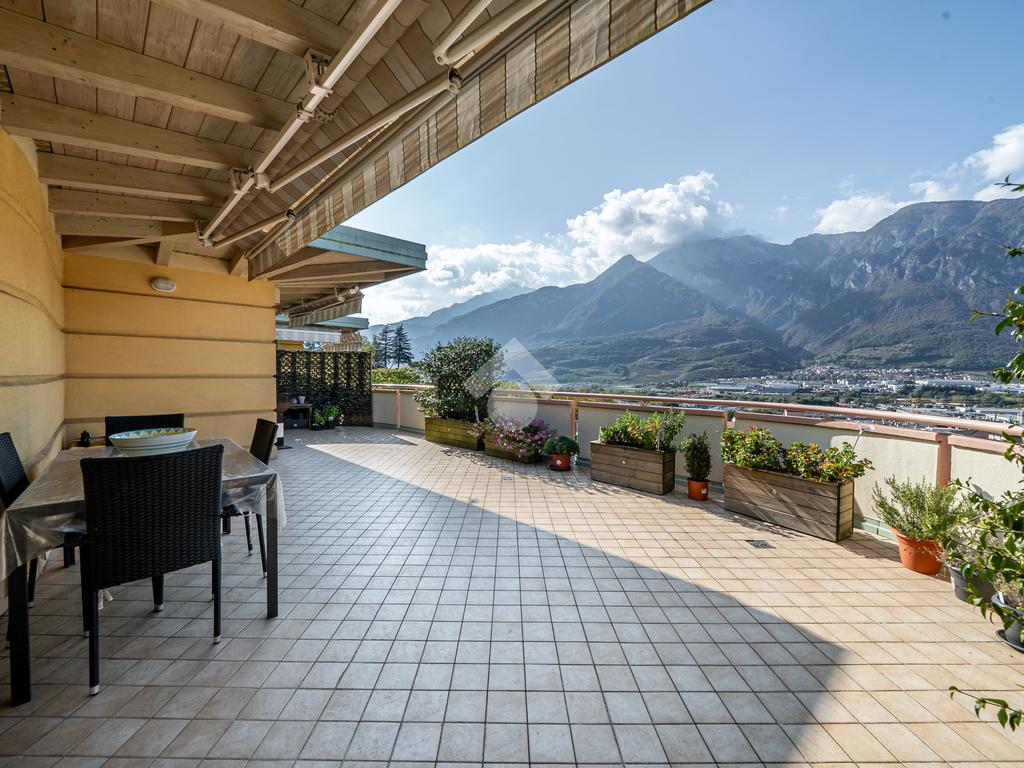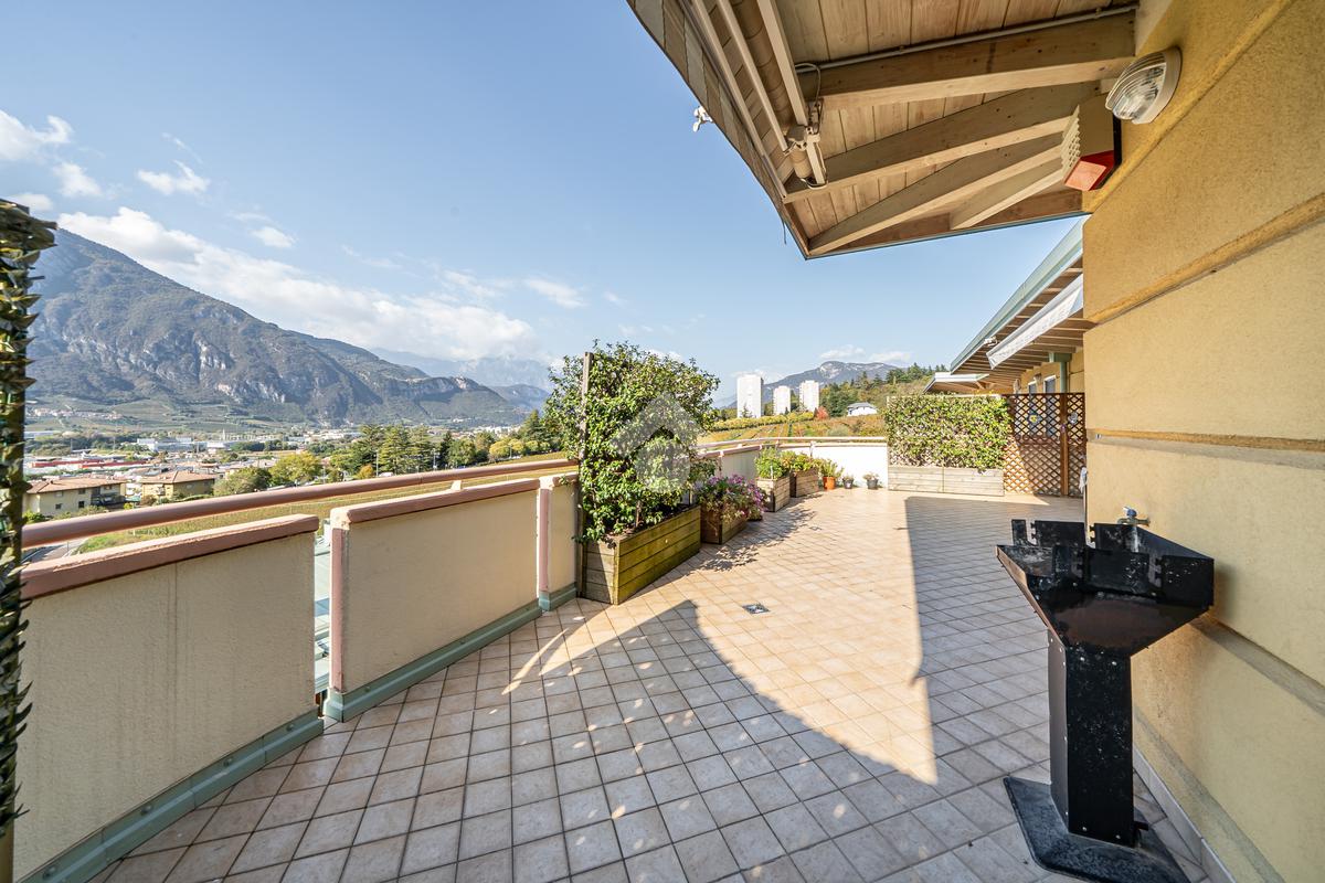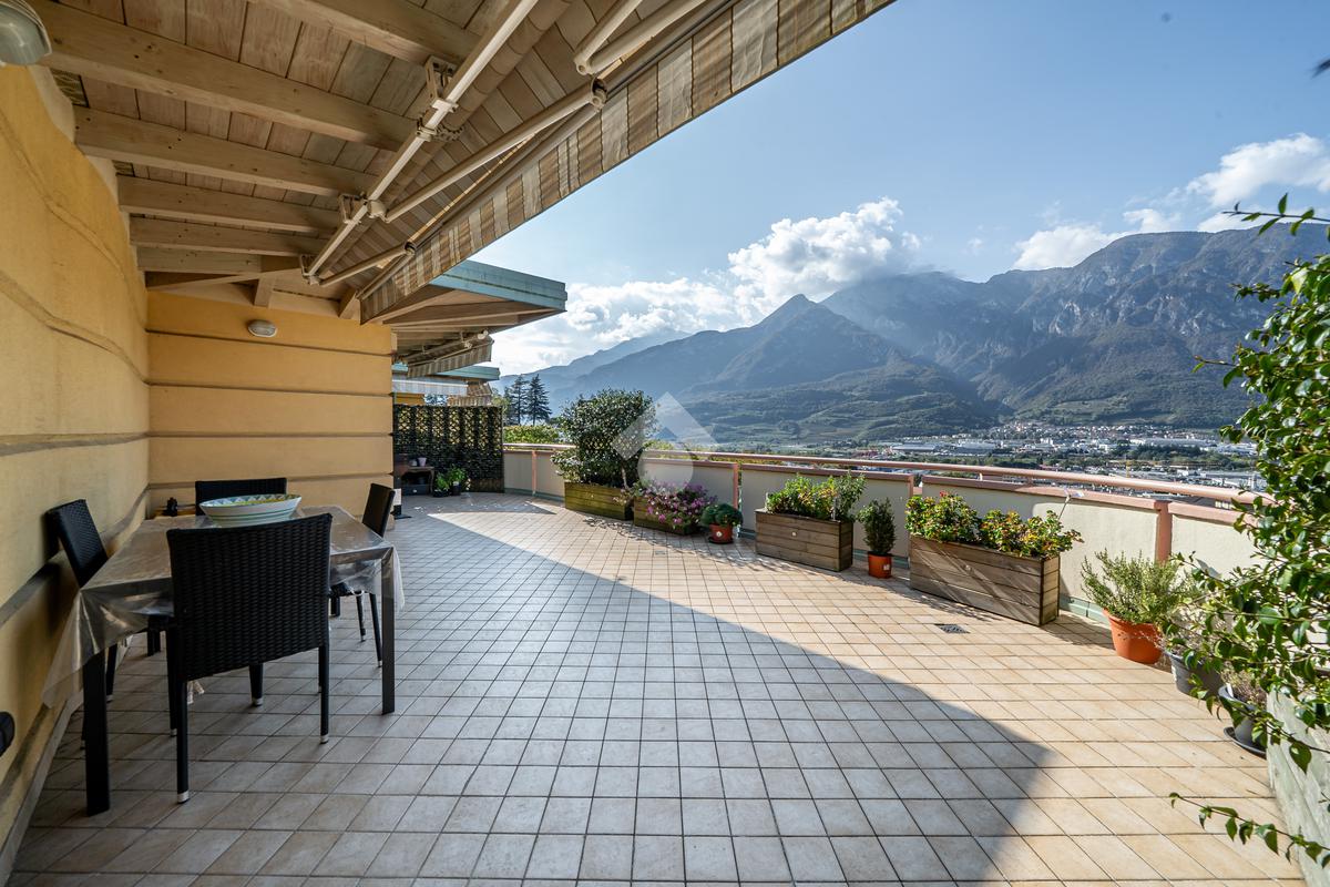 L'ingresso dell'abitazione si apre su un corridoio il quale introduce agli ambienti della zona giorno, il soggiorno: ambiente ampio, accogliente e perfettamente illuminato grazie alle grandi vetrate che si affacciano sul terrazzo e la cucina abitabile, caratterizzata da moderne e ricercate finiture. Entrambi gli spazi si affacciano sul magnifico terrazzo, vero punto di forza dell'immobile, con ottima esposizione sud-ovest e una vista mozzafiato su Trento.