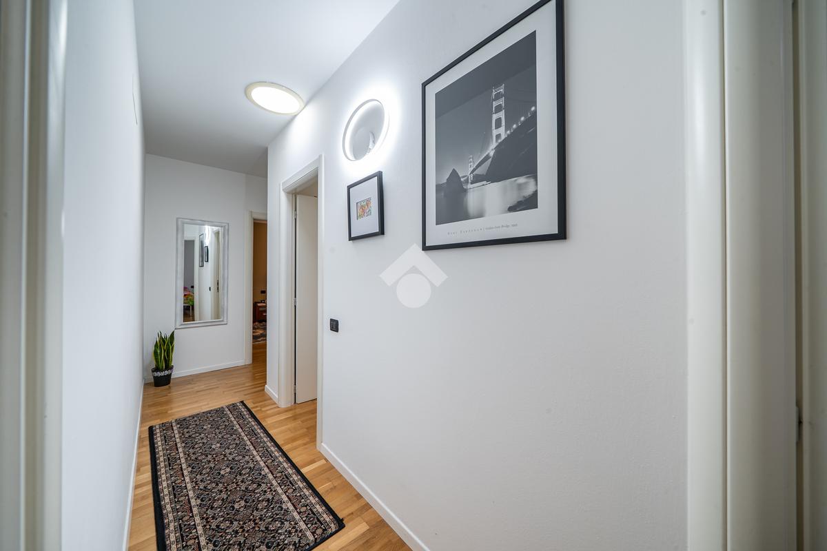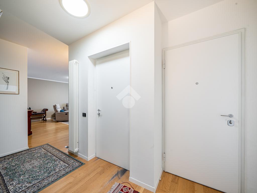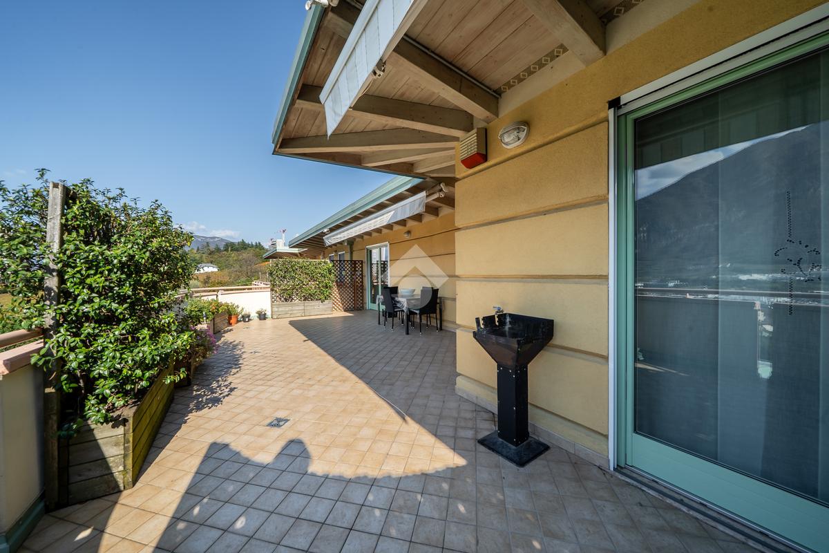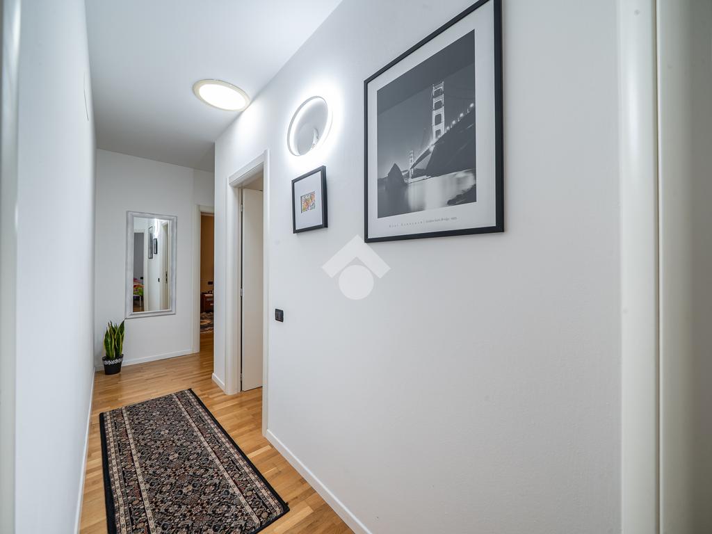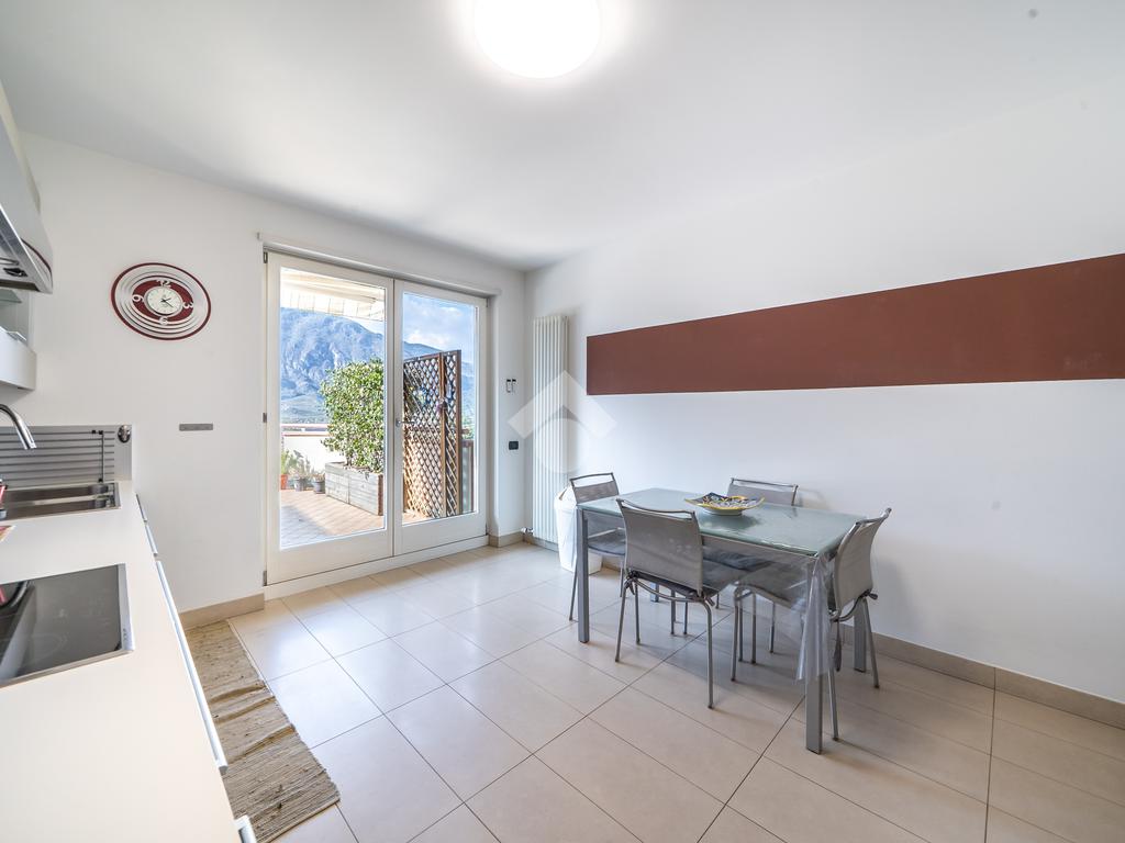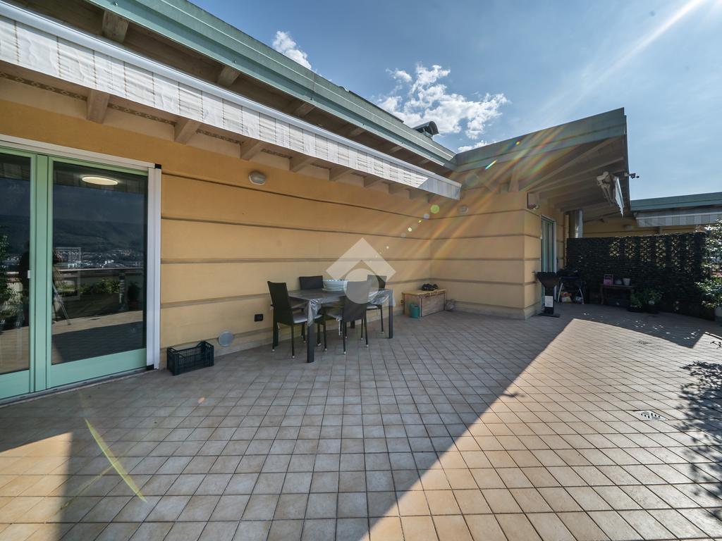 L'ingresso dell'abitazione si apre su un corridoio il quale introduce agli ambienti della zona giorno, il soggiorno: ambiente ampio, accogliente e perfettamente illuminato grazie alle grandi vetrate che si affacciano sul terrazzo e la cucina abitabile, caratterizzata da moderne e ricercate finiture. Entrambi gli spazi si affacciano sul magnifico terrazzo, vero punto di forza dell'immobile, con ottima esposizione sud-ovest e una vista mozzafiato su Trento.