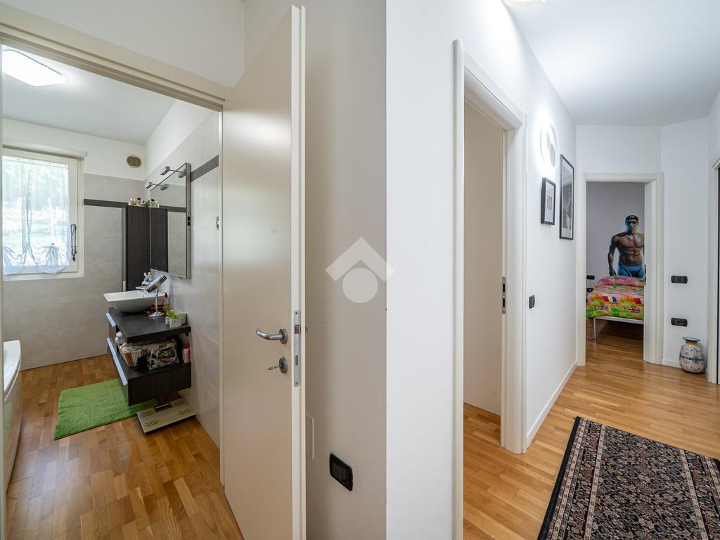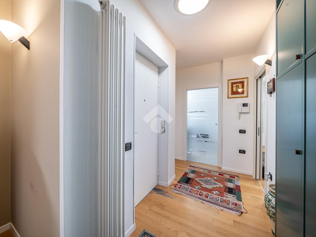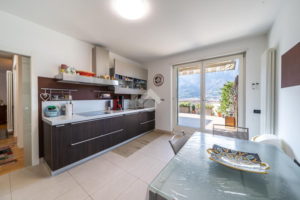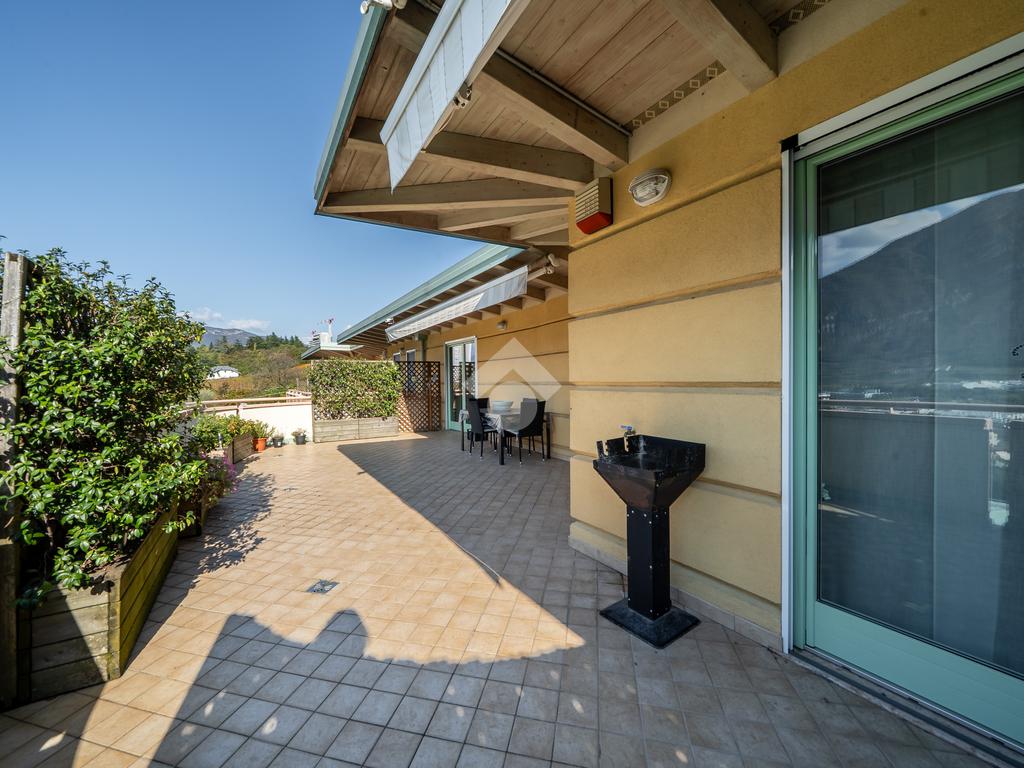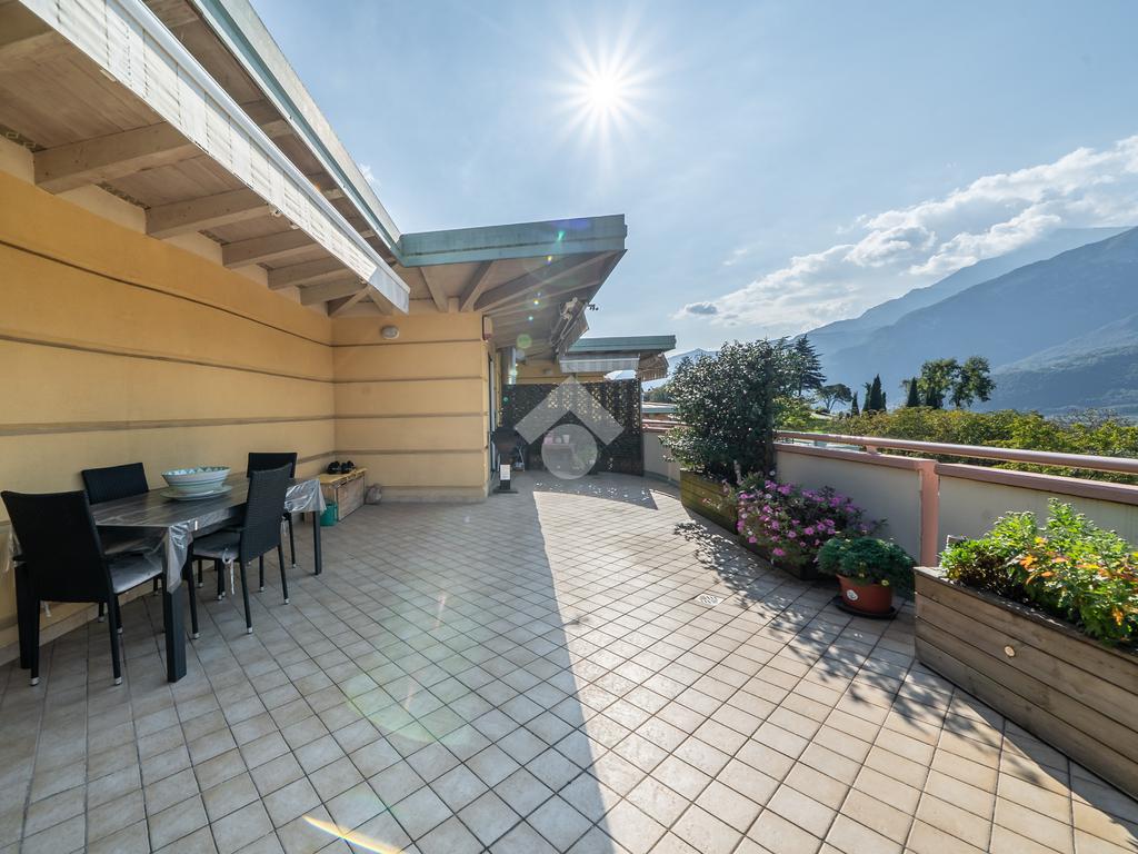 L'ingresso dell'abitazione si apre su un corridoio il quale introduce agli ambienti della zona giorno, il soggiorno: ambiente ampio, accogliente e perfettamente illuminato grazie alle grandi vetrate che si affacciano sul terrazzo e la cucina abitabile, caratterizzata da moderne e ricercate finiture. Entrambi gli spazi si affacciano sul magnifico terrazzo, vero punto di forza dell'immobile, con ottima esposizione sud-ovest e una vista mozzafiato su Trento.