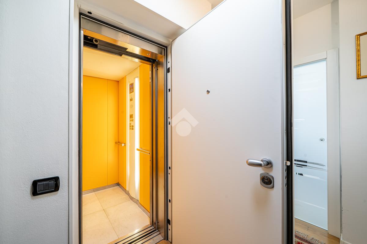 L’accesso avviene dal cancello condominiale riservato ai soli residenti; da qui una scala esterna conduce al portone dell'edificio, con possibilità di utilizzare l’ascensore che arriva direttamente all’interno dell’attico.