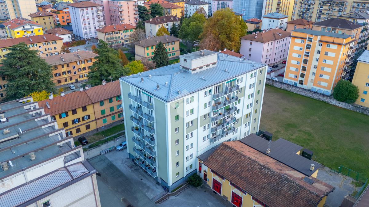 L’immobile si trova al primo piano di una palazzina di sette piani, edificata negli anni ’70, la quale è stata ristrutturata nel 2024 con cappotto esterno. L’accesso all’abitazione avviene tramite una scala interna comune o con ascensore che conduce direttamente all’ingresso dell’appartamento.