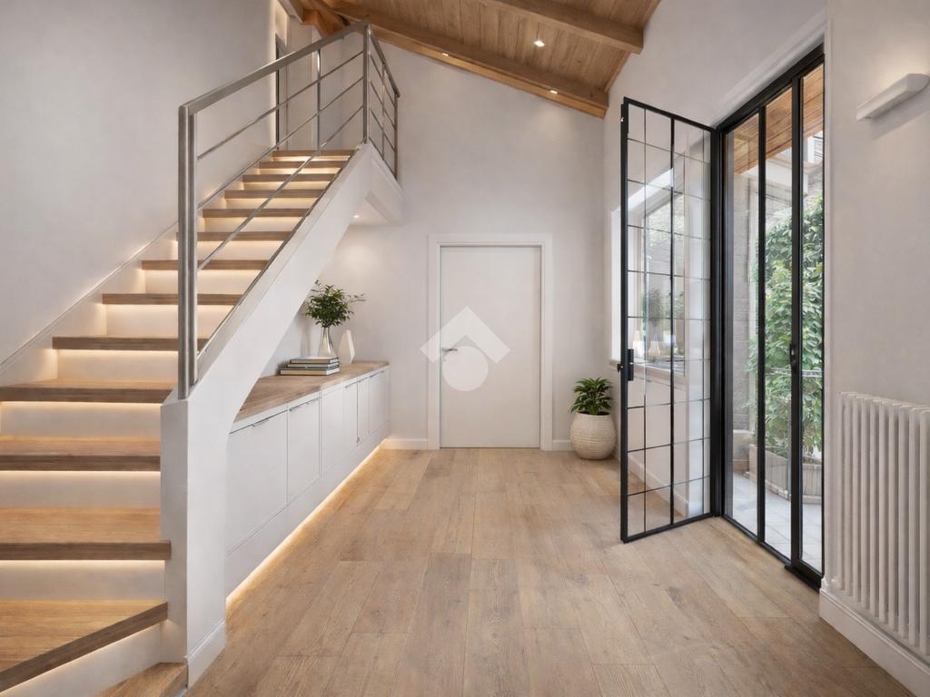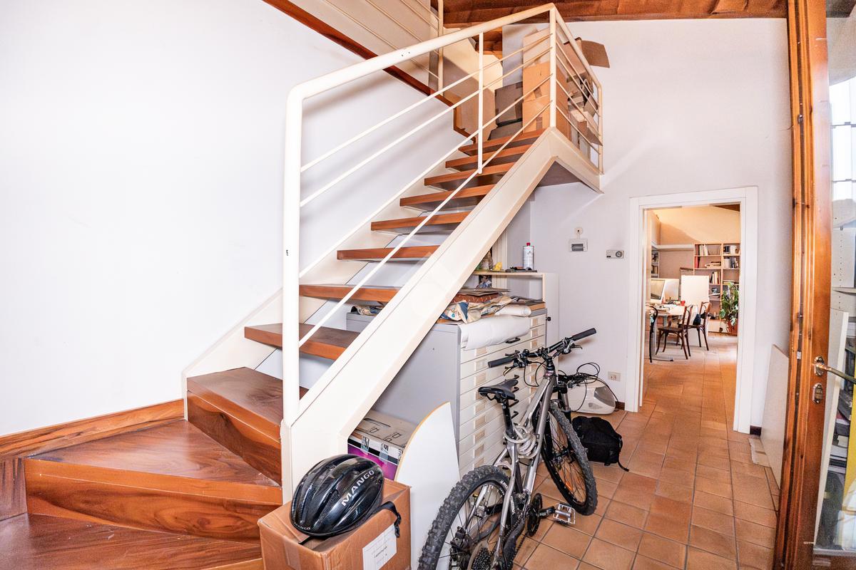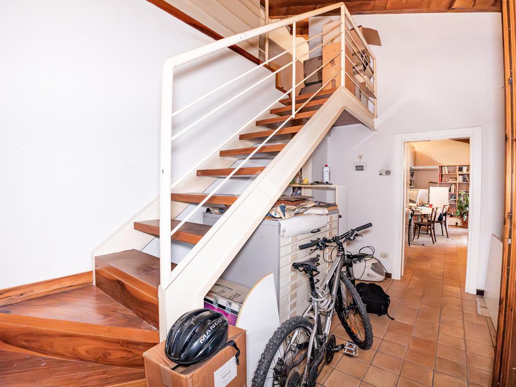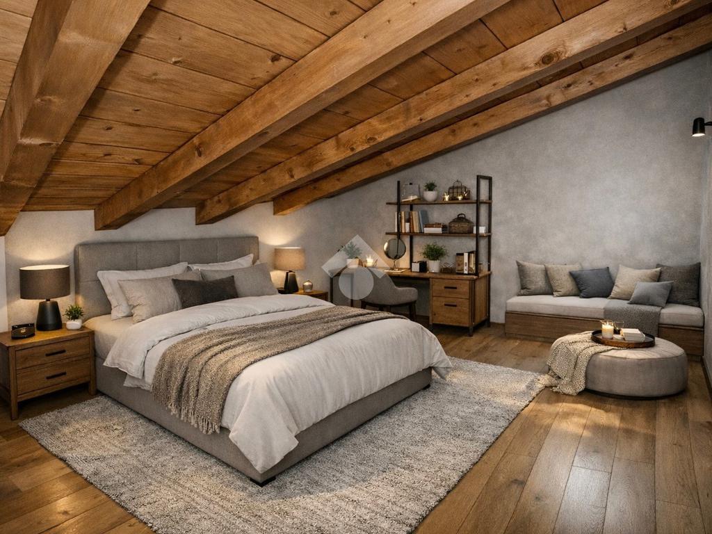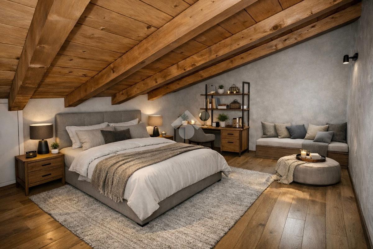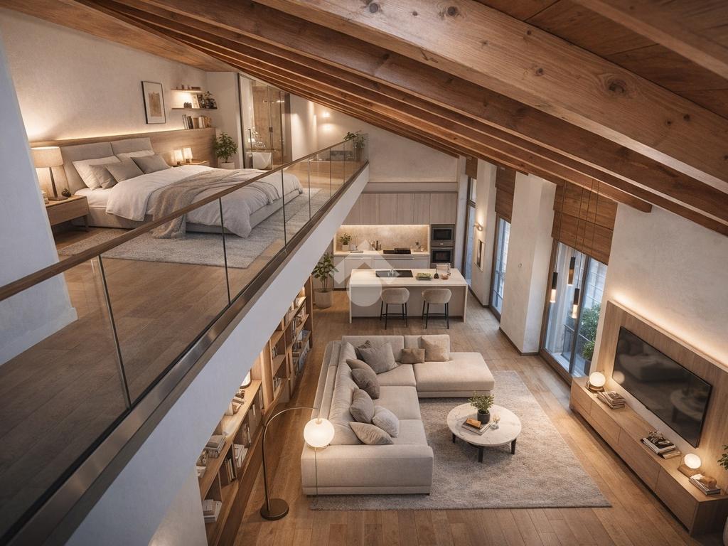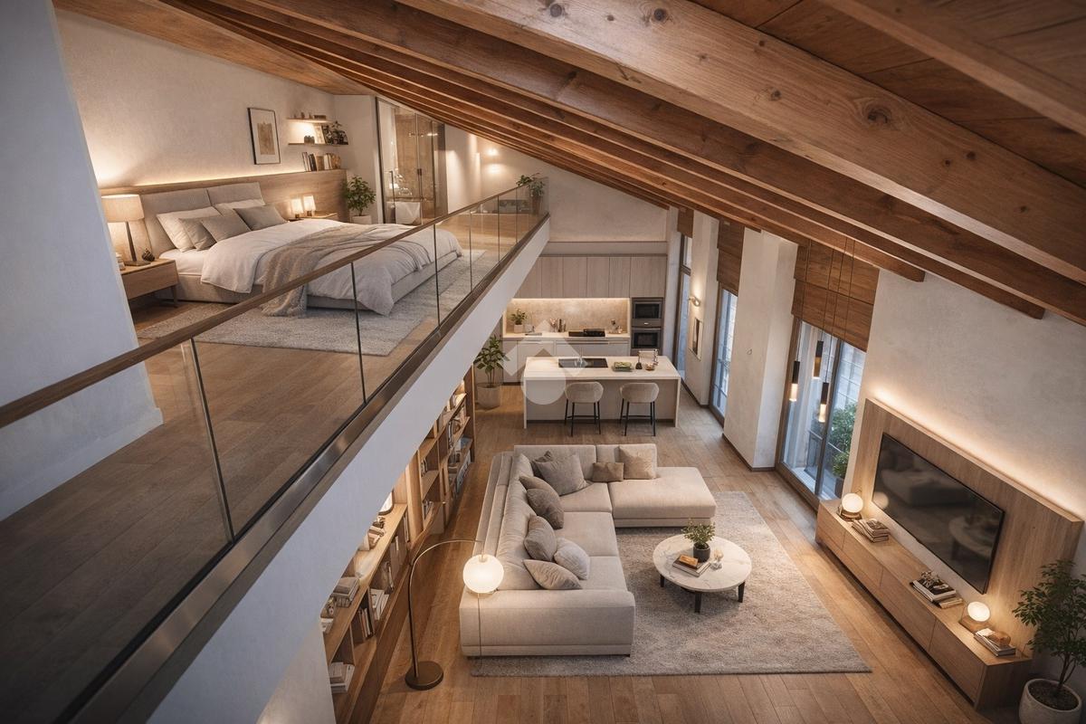 L’accesso avviene attraverso una piacevole corte interna, che introduce a una scala esterna in legno dal sapore autentico, conducendo direttamente all’ingresso dell’abitazione. Varcata la soglia, si viene accolti da un ampio open-space con soppalco, un ambiente arioso e versatile, ideale per chi ama spazi aperti e soluzioni architettoniche di carattere.